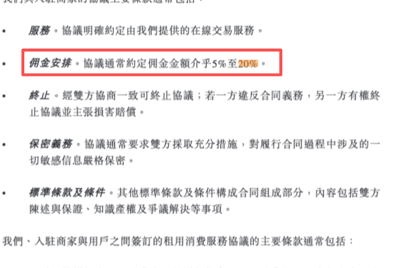 具体收费结构上,招股说明书显示,协议约定的佣金比例介于5%至20%之间,此外平台还按年向商家收取固定年费,首年通常为9800至19800元,后续每年6800至9800元。