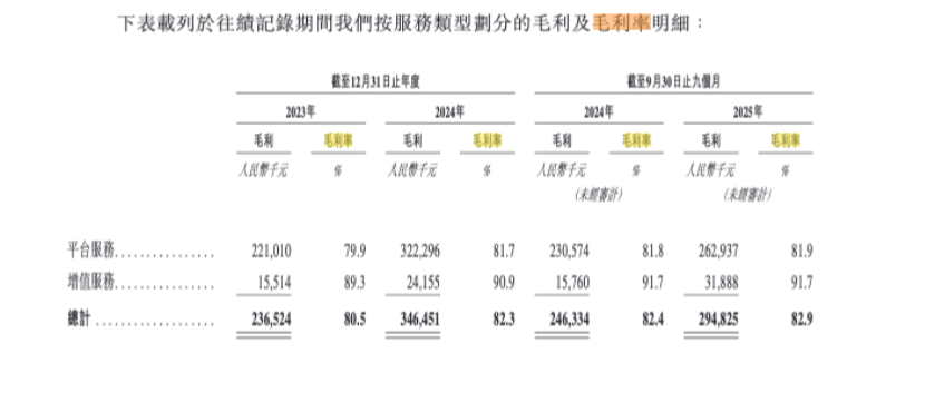 这种高收费模式,从研趣科技持续攀升的毛利率中可得到侧面印证。招股说明书显示,2023年、2024年及2025年前三季度,研趣科技毛利率分别为80.5%、82.3%与82.9%,逐年上升,远超行业一般水平。