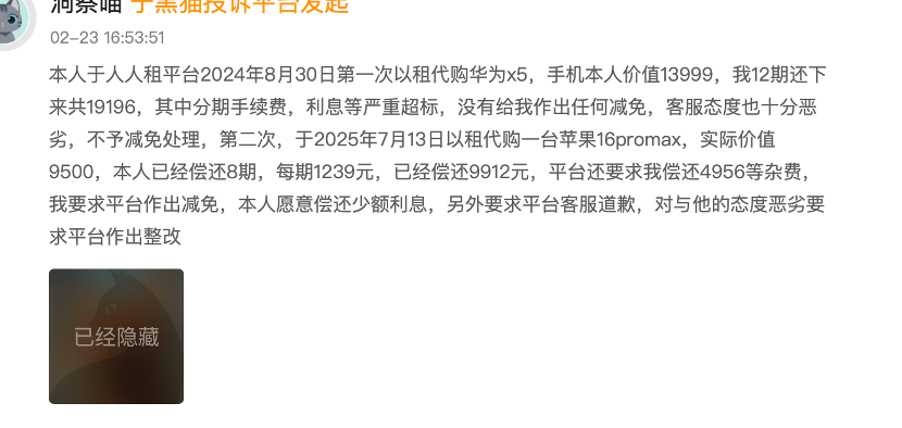 2025年开始,此类“以租代购”模式背后的高收费问题被市场关注。
