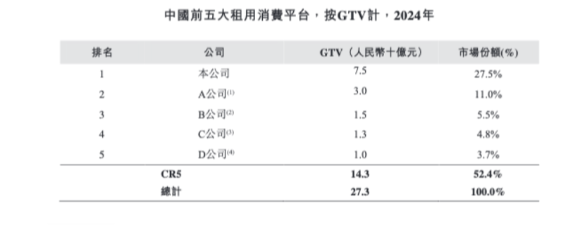 目前,租用消费平台业务的市场规模并不小。根据灼识咨询的资料,2024年排名前五的租用消费平台合计占据约52.4%的市场份额,行业集中度较高。